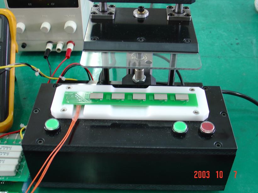 Practical Human Finger Touch Motion Automatic Mass production Touch Tester Basically most of kinds a materials has a high permittivity then air. The material which has a dielectric node has a characteristics of energy charge like a capacitor. Using this characteristic, Capacitive sensor switch can identify touch of human body. At the touch node, with a human touch, it has a variation of capacitance between node and ground. The variation of capacitance is detected by switch IC and make a TTL output. The way of sensing can be done by touch or non-touch. Compare to touch sensing method, non-touch method need more precise detecting technology. Defending of permittivity of material which place between node and human body. May have to adjust sensitivity. Now we are developing active adjust sensing technology. For future, many kinds a switch application will be change from mechanical way to soft touch way.¡¡ |